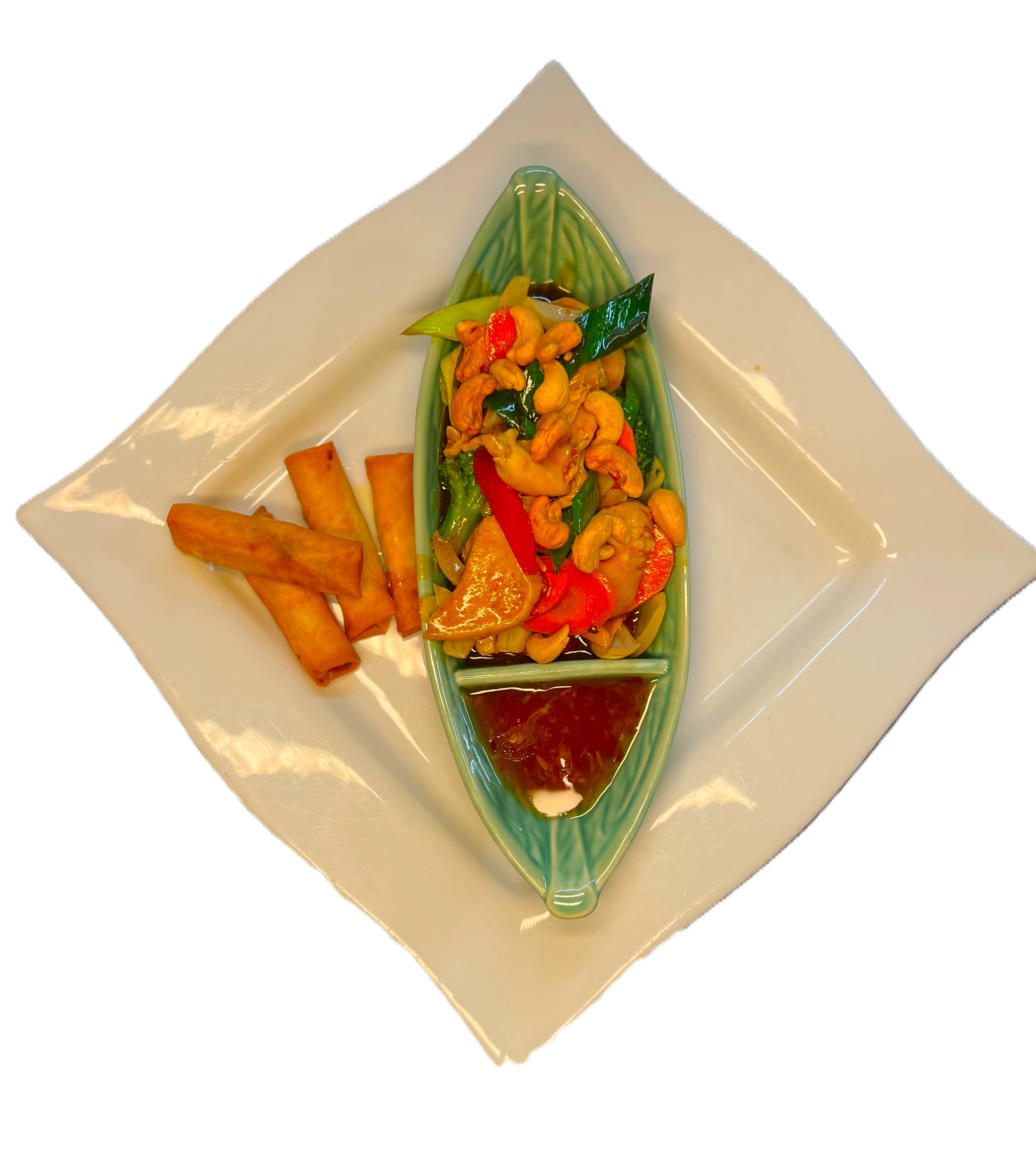 Wok med grönsaker, cashewnötter och valfri fyllning, serveras med ris 🌶️ (Valfri Fyllning)