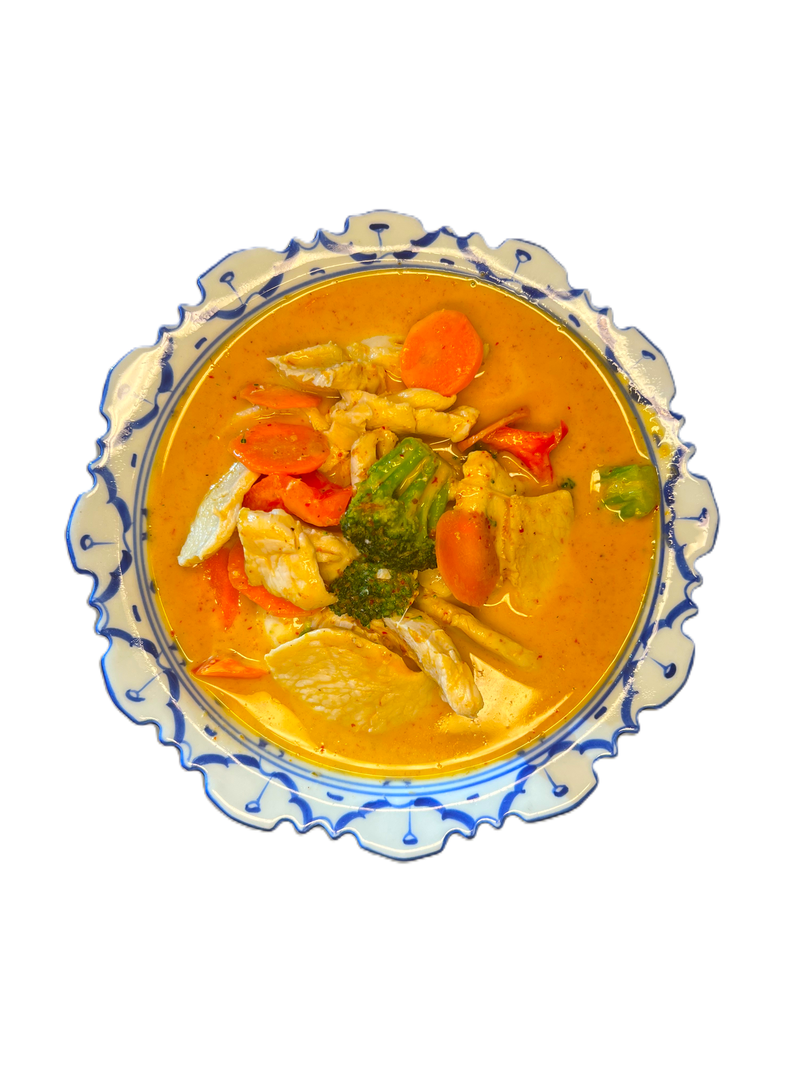 Panang curry med valfri fyllning, grönsaker och kokosmjölk. serveras med ris 🌶️🌶️🌶️