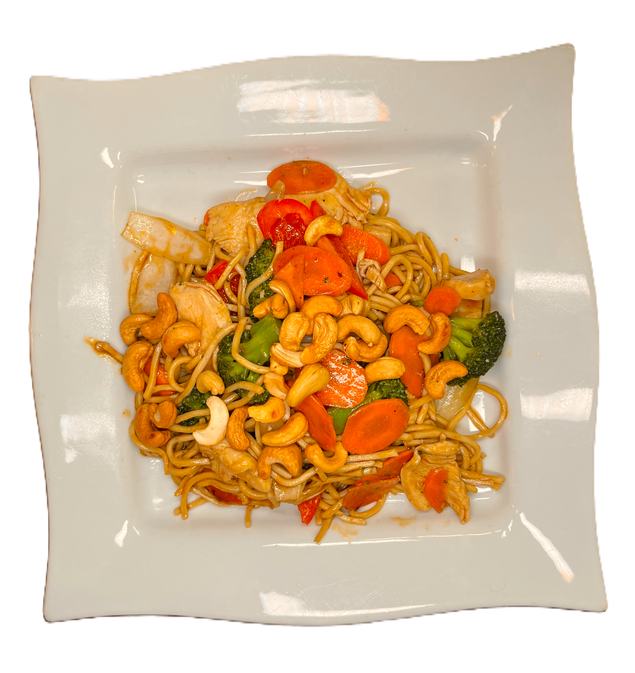 Wokade äggnudlar med grönsaker och cashewnötter. Valfri Fyllning🌶️