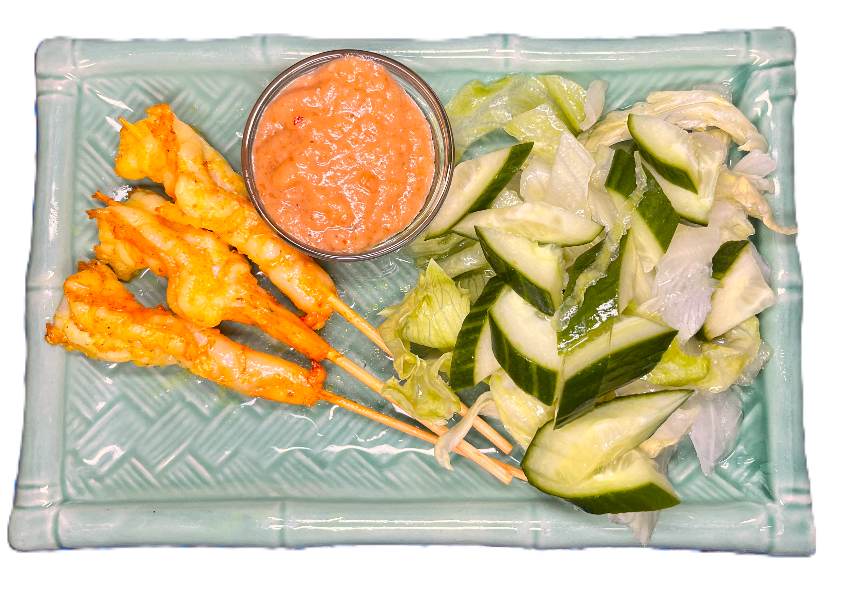 4st Kycklingspett med jordnötssås, serveras med ris 🌶️