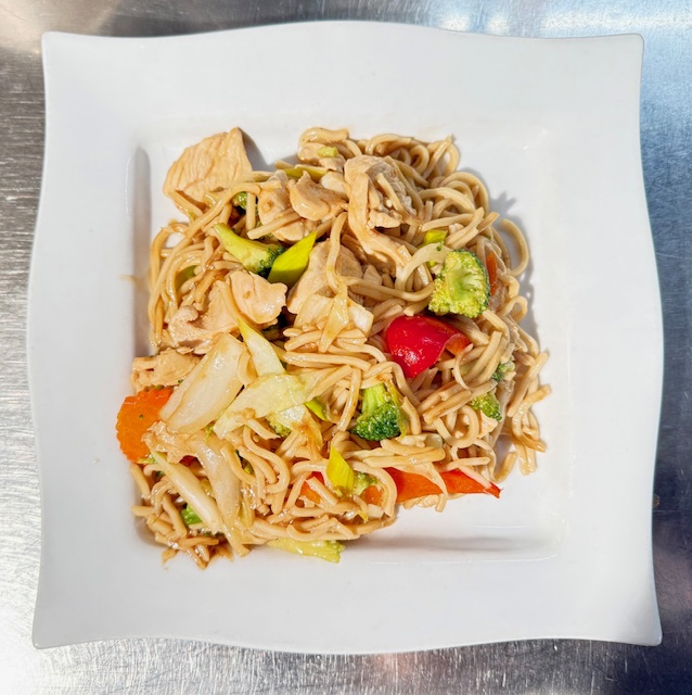 Wokade äggnudlar med grönsaker och valfri fyllning